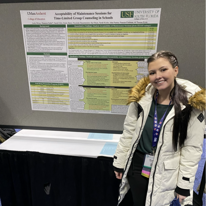 Research Interests: I am involved in the Positive Psychology Lab with Dr. Suldo. My research interests are culturally responsive mental health practices with Latinx and Hispanic students, families, and communities.